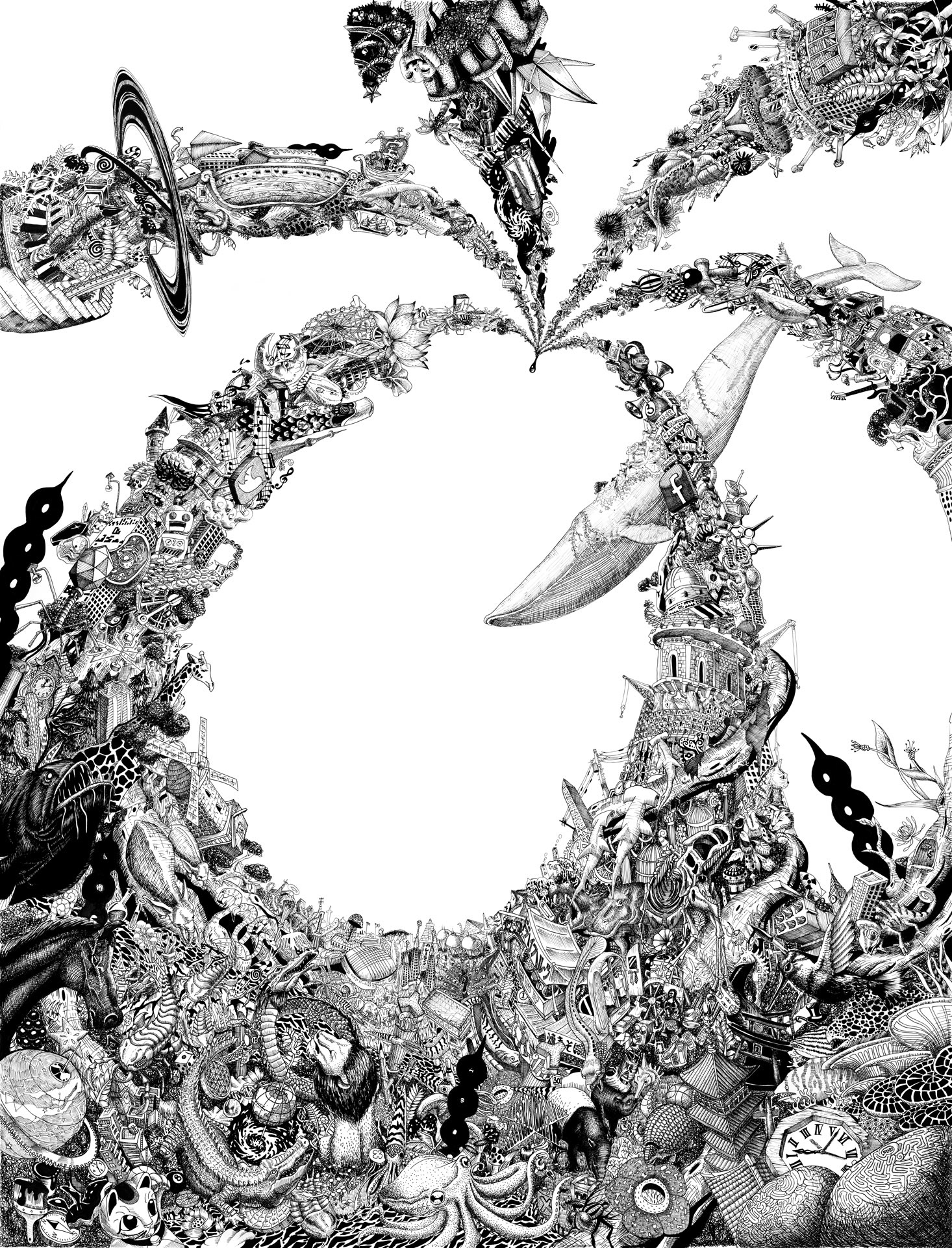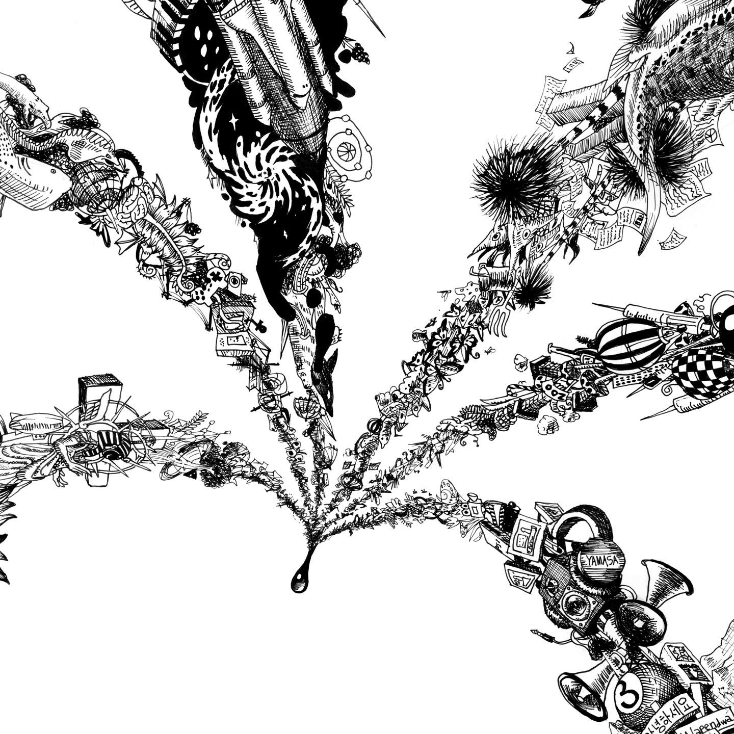 この作品は”収束”した“思考"がひとつの雫になり滴り落ちる瞬間が描かれています。